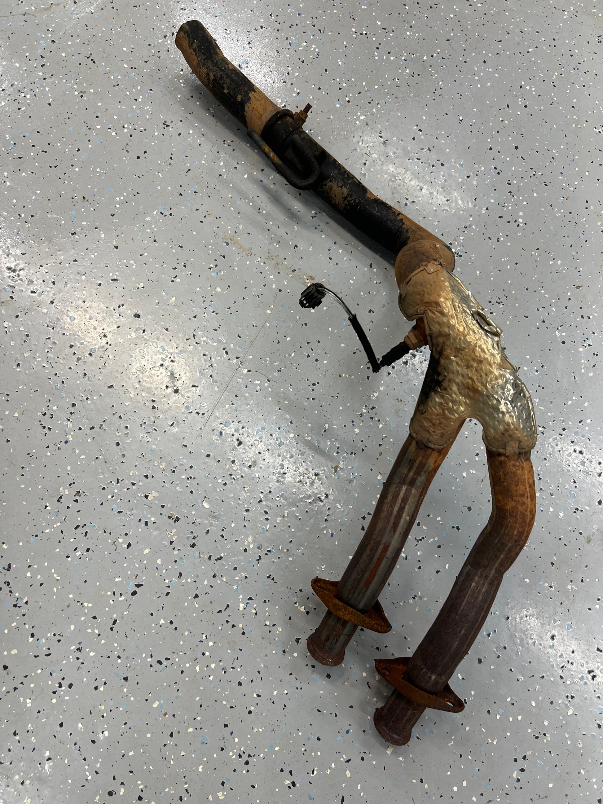 - Cut Down Pipe will go from the manifold to the crossover section around the drain plug section where it is straight and can easily but re connected with a exhaust connector and clamps or welded. This is just so it is easier and cheaper to ship. These will be from either a WJ or XJ since this short portion would be the same part.