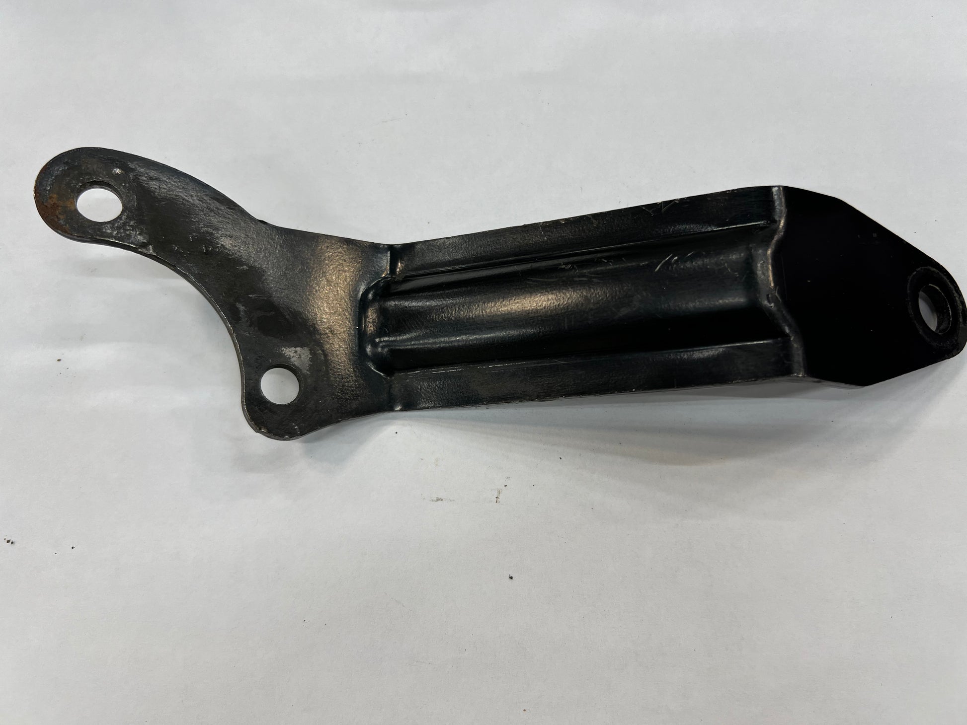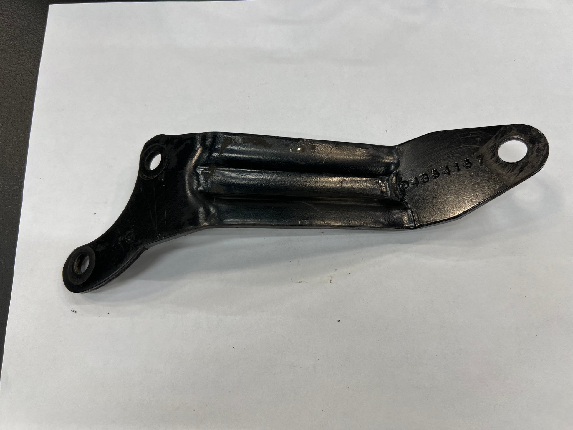 This is the support bracket used in the 1999-04 Jeep Grand Cherokee 4.0s and 2000-2006 Jeep Wranglers. Goes from the upper A/C Compressor mount to two of the Power Steering bolts to support the intake manifold.